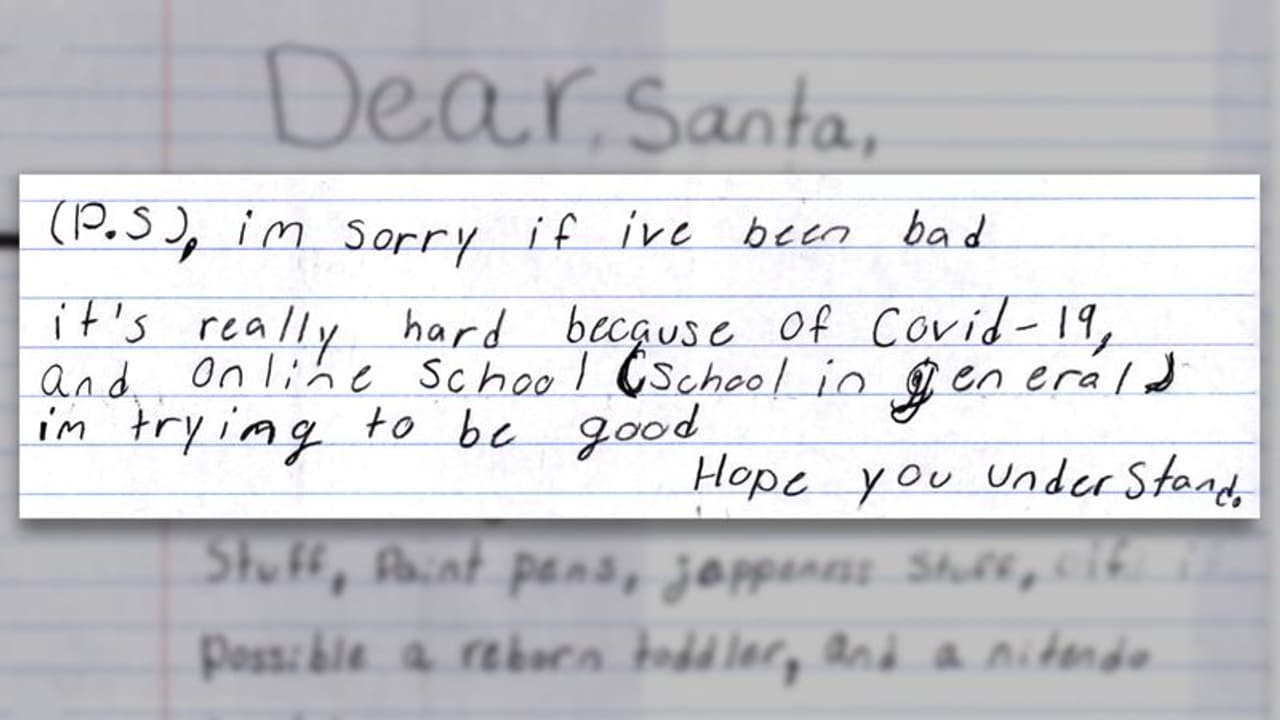 കുട്ടികള് സാന്റാ ക്ലോസിന് ഇത്തവണ അയച്ച കത്തുകളിലേറെയും കൊവിഡ് 19 രോഗമാണ്. ജീവിതത്തെയാകെ മാറ്റിമറിച്ച മഹാമാരിയില്നിന്നും സാന്റ ഇടപെട്ട് രക്ഷിക്കണമെന്നാണ് അവരുടെ ആവശ്യം. ഓണ്ലൈന് ക്ലാസുകള് അവസാനിപ്പിക്കണം എന്നും ചില കുട്ടികള് ആവശ്യപ്പെടുന്നു.