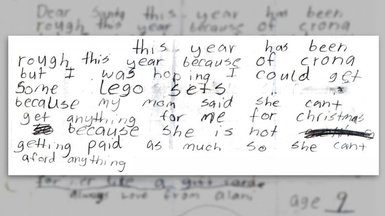 കൊറോണ മഹാമാരി ഇല്ലാതാവണം എന്നാണ് കത്തുകളിലേറെയും ഉയര്ന്ന ആവശ്യം. മറ്റു ചിലതില്, സാന്റായോട് കുട്ടികള് ആവശ്യപ്പെടുന്നത് മാസ്കുകളാണ്. കൊവിഡ് മൂലം ജോലി നഷ്ടപ്പെട്ട രക്ഷിതാക്കള് എങ്ങനെ ക്രിസ്മസ് സമ്മാനം വാങ്ങിത്തരുമെന്ന ആശങ്കയും ചിലര് പങ്കുവെച്ചു.