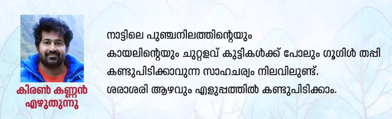 കഴിഞ്ഞ പ്രളയത്തിലും ഈ പ്രളയത്തിലും എവിടെ വരെ വെള്ളം എത്തി? എവിടെയാണ് ആദ്യം വെള്ളം വലിയുന്നത്? സൂഷ്മമായ ഒഴുക്കുകൾ എങ്ങോട്ടൊക്കെയാണ്? വേലിയേറ്റവും വേലിയിറക്കവും നമ്മുടെ നാട്ടിലെ വെള്ളമൊഴുക്കിൽ മാറ്റം വരുത്തുന്നുണ്ടോ? എങ്കിൽ കടലിനോട് കരവെള്ളം ഏതൊക്കെ ജലരേഖകളിലൂടെയാണ് ബന്ധപ്പെടുന്നത്?