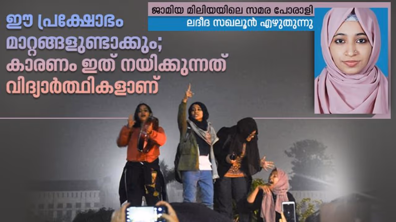 ജാമിയ മിലിയയിലെ സമര പോരാളിയായ മലയാളി വിദ്യാര്ത്ഥിനി ലദീദ സഖലൂന് ഫസ്റ്റ് പോസ്റ്റില് എഴുതിയ കുറിപ്പിന്റെ സ്വതന്ത്ര വിവര്ത്തനം