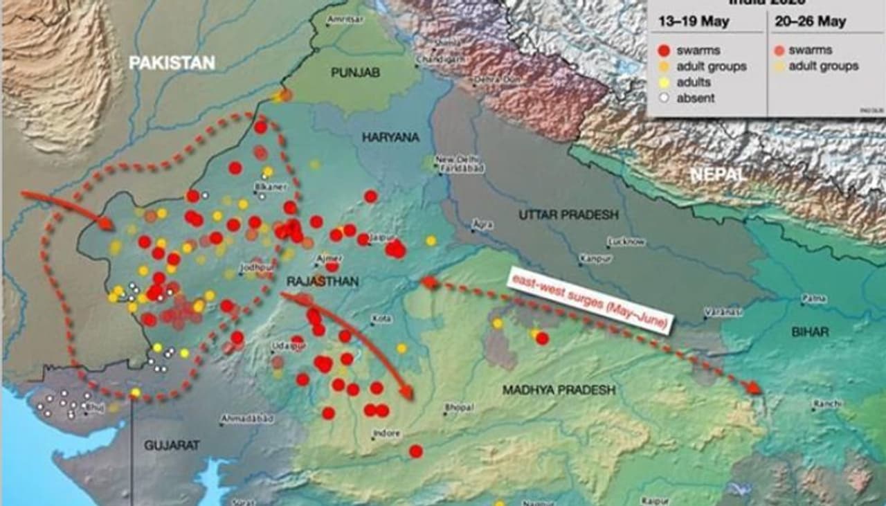സാധാരണയായി, ജൂൺ മുതൽ നവംബർ വരെ പടിഞ്ഞാറൻ രാജസ്ഥാനിലും ഗുജറാത്തിലും മരുഭൂമിയില് വെട്ടുകിളികൾ കാണപ്പെടാറുണ്ട്. എന്നിരുന്നാലും, ഈ വർഷം, അസാധാരണമാംവിധം, ഇവയെ ഏപ്രിൽ മാസത്തിൽ തന്നെ കണ്ടതായി കൃഷി മന്ത്രാലയത്തിന്റെ കീഴിലുള്ള ലോക്കസ്റ്റ് വാര്ണിംഗ് ഓർഗനൈസേഷൻ -എൽഡബ്ല്യുഒ ( Locust Warning Organisation -LWO) റിപ്പോർട്ട് ചെയ്യുന്നു. നിലവില് ഭീഷണിയുയര്ത്തിയിരിക്കുന്ന ഈ കൂട്ടങ്ങൾ അസാധാരണവും ഭയാനകവുമായ പ്രത്യാഘാതങ്ങളുണ്ടാക്കുമെന്ന കാര്യത്തില് സംശയമില്ല. കാരണം വെട്ടുകിളിക്കൂട്ടങ്ങൾ ഭക്ഷ്യവിളകൾക്ക് ഗുരുതരമായ ഭീഷണി ഉണ്ടാക്കുന്നവയാണ്. ഐക്യരാഷ്ട്രസഭയുടെ ഭക്ഷ്യ-കാർഷിക ഓർഗനൈസേഷന്റെ കണക്കുകൾ പ്രകാരം പ്രതിവർഷം 2500 പേർക്ക് ഭക്ഷണം നൽകാൻ ആവശ്യമായ വിളകൾ വിഴുങ്ങാൻ ഓരോ വെട്ടുകിളികൂട്ടത്തിനും കഴിയും.