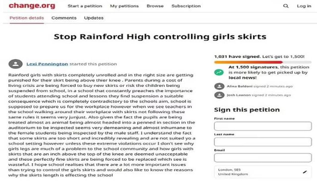 മെർസിസൈഡിലെ റെയിൻഫോർഡ് ഹൈസ്കൂളിലെ വിദ്യാര്ത്ഥികളും രക്ഷിതാക്കളും വലിയ പ്രതിഷേധത്തിലാണ്. കാര്യം വേറൊന്നുമല്ല. നമുക്കറിയാം ഓരോ സ്കൂളിനും ഓരോ യൂണിഫോം പോളിസി ഉണ്ടാകും. അതുപോലെ റെയിന്ഫോര്ഡിനുമുണ്ട്. അതില് പെണ്കുട്ടികളുടെ പാവാടയുടെ നീളത്തെ കുറിച്ചും സൂചിപ്പിക്കുന്നുണ്ട്. എന്നാല്, പെണ്കുട്ടികളുടെ പാവാടയുടെ നീളം പുരുഷ അധ്യാപകര് പരിശോധിച്ചു എന്ന് ആരോപിച്ചാണ് ഇപ്പോള് വിദ്യാര്ത്ഥികളും രക്ഷിതാക്കളും പ്രതിഷേധിക്കുന്നത്.