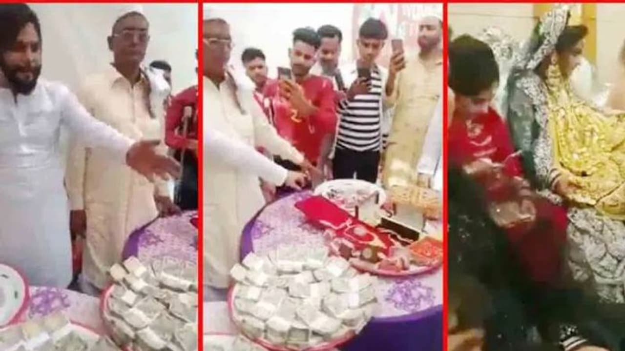 വിവാഹ ചടങ്ങിൽ പാത്രങ്ങളിൽ അടുക്കിവച്ചിരിക്കുന്ന നോട്ട് കെട്ടുകൾ, കാൽമുട്ട് വരെ എത്തുന്ന വധുവിന്റെ സ്വർണ മാല, വെള്ളി, മറ്റ് വിലപിടിപ്പുള്ള വസ്തുക്കൾ എന്നിവയാണ് വരൻ പ്രദർശനത്തിന് വച്ചത്. വീഡിയോയിൽ, വരൻ പണത്തിനെകുറിച്ചും സ്ത്രീധനമായി ലഭിച്ച എസ്യുവിയെക്കുറിച്ചും വീമ്പിളക്കുന്നത് കാണാം. തുടർന്ന് പൊന്നിൽ കുളിച്ച് നിൽക്കുന്ന മണവാട്ടിയുടെ രൂപവും കാണാം. സ്ത്രീധനമായി ഏകദേശം ഒരുകോടി രൂപ ലഭിച്ചുവെന്നാണ് നാട്ടുകാരുടെ നിഗമനം. എന്നാൽ, വൈറലായ ആ പൊങ്ങച്ച വീഡിയോ പൊലീസിനെ മാത്രമല്ല പ്രകോപിപ്പിച്ചത്, സമൂഹത്തെ ഒന്നടങ്കമാണ്.
