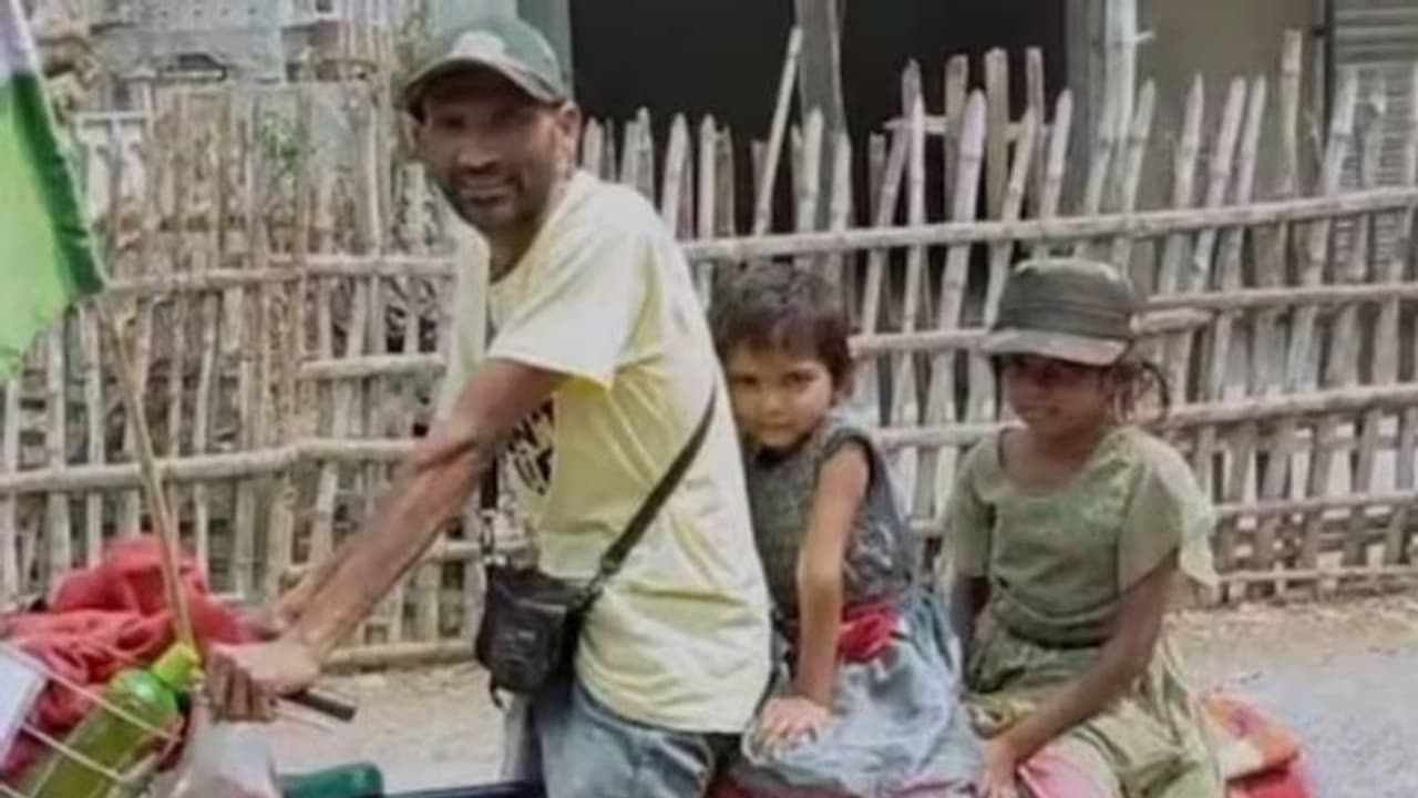 ഒരു സൈക്കിളിൽ മക്കളെ രണ്ടുപേരെയും പിന്നില് ഇരുത്തിയാണ് അനിൽ ചൗഹാൻ രാജ്യം ചുറ്റി സഞ്ചരിക്കുന്നത്.