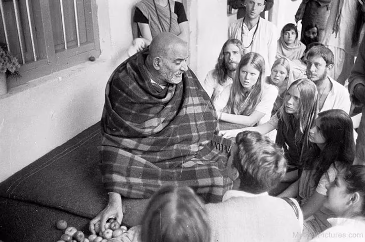 ആ നിരോധനം പകർന്ന നിരാശയിൽ നിന്ന് കരകയറാനായാണ്, 1967 -ൽ റിച്ചാർഡ് ഇന്ത്യയിലേക്ക് സന്ദർശനത്തിന് എത്തിച്ചേരുന്നത്. ഇങ്ങോട്ടു വന്നത് ഒരു വിനോദ സഞ്ചാരിയായിട്ടായിരുന്നു എങ്കിലും. മടങ്ങിപ്പോയത് തീർത്ഥയാത്രികനെപ്പോലെയാണ്. അതിനു കാരണമോ, ആ യാത്രയിൽ ഇന്ത്യയിൽ വെച്ച് സന്ധിക്കാനിടയായ, മഹാരാജ് എന്നറിയപ്പെട്ടിരുന്ന 'നീം കരോളി വാലെ ബാബാ' എന്ന സന്യാസിയും. ദേഹത്ത് ഒരു ഷാളും പുതച്ച് സദാ ഒരു നിലപാടുതറയിൽ ധ്യാനത്തിലിരിക്കും ബാബ. ആ സന്യാസി ഒരു ദിവസം തന്റെ മനസ്സ് വായിച്ചെടുത്തു എന്നാണ് റിച്ചാർഡ് പറയുന്നത്. പ്ലീഹാ ഗ്രന്ഥിക്ക് വീക്കം വന്നു മരിച്ചുപോയ റിച്ചാർഡിന്റെ അമ്മയെപ്പറ്റി സ്വാമി ചോദിച്ചു. താൻ ഇക്കാര്യം ഇന്ത്യയിൽ ആരോടും പറഞ്ഞിരുന്നില്ലല്ലോ എന്ന് റിച്ചാർഡ് അത്ഭുതം കൂറി.