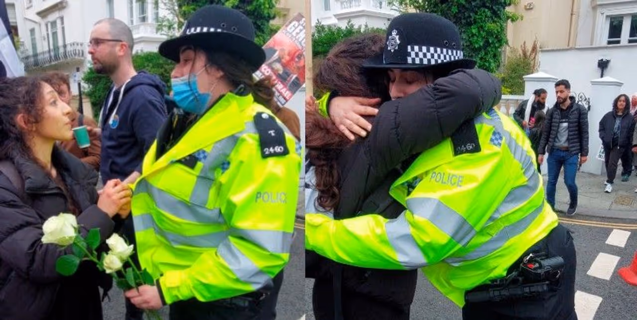 കഴിഞ്ഞ ദിവസങ്ങളിലാണ് ലണ്ടനിലെ കെന്സിങ്ടണില് സ്ഥിതി ചെയ്യുന്ന ഇസ്രായേല് എംബസിക്കു മുന്നില് വമ്പന് പ്രതിഷേധത്തിനിടെ വിവാദ സംഭവം നടന്നത്. ഡ്യൂട്ടിയിലുണ്ടായിരുന്ന പൊലീസ് ഉദ്യോഗസ്ഥ പ്രതിഷേധക്കാരിയെ ആലിംഗനം ചെയ്യുന്നതും ആകാശത്തേക്കു മുഷ്ടി ചുരുട്ടി ഫലസ്തീന് അനുകൂല മുദ്രാവാക്യം വിളിക്കുകയും ചെയ്യുന്ന ദൃശ്യങ്ങള് പുറത്തുവന്നിരുന്നു. ഇവ സോഷ്യല് മീഡിയയില് െവെറലായി. ഇവര്ക്കെതിരെ നടപടി ആവശ്യപ്പെട്ട് ബ്രിട്ടനിലെ ജൂത വിഭാഗങ്ങളും വലതുപക്ഷ സംഘടനകളും രംഗത്തുവന്നു. ഇവര്ക്ക് എതിരായി സോഷ്യല് മീഡിയാ കാമ്പെയിനും നടന്നു. ഇതിനു പിന്നാലെ, സര്വീസ് ചട്ടങ്ങള് ലംഘിച്ച ഉദ്യോഗസ്ഥയ്ക്ക് എതിരെ അന്വേഷണം നടത്തുമെന്ന് മെട്രോ പൊളിറ്റന് പൊലീസ് വ്യക്തമാക്കിയിരുന്നു. എന്ത് സാഹചര്യത്തിലാണ് പൊലീസ് ഉദ്യോഗസ്ഥ മുദ്രാവാക്യം വിളിച്ചതെന്ന കാര്യം അന്വേഷിച്ച് അനന്തര നടപടി സ്വീകരിക്കുമെന്നും പൊലീസ് അറിയിച്ചിരുന്നു.