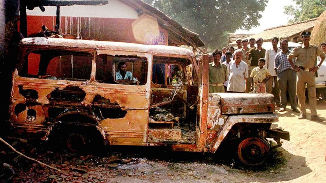 'ഗ്രഹാം സ്റ്റെയിൻസിന്റെ കാർ അഗ്നിക്കിരയാക്കപ്പെട്ട നിലയിൽ '