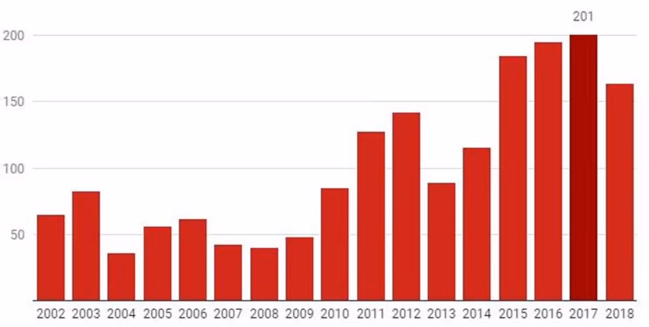 2017 -ൽ കൊല്ലപ്പെട്ടവരുടെ എണ്ണം കുറവാണെങ്കിലും, റിപ്പോർട്ട് ചെയ്യപ്പെടുന്ന മരണങ്ങളുടെ എണ്ണം കാലക്രമേണ വർദ്ധിച്ചുകൊണ്ടിരിക്കുകയാണെന്ന് പഠനം നടത്തിയവര്തന്നെ പറയുന്നുണ്ട്. ഓരോ ആഴ്ചയും ശരാശരി മൂന്നുപേർ വീതമെങ്കിലും കൊല്ലപ്പെടുന്നുവെന്നാണ് അന്ന് പഠനത്തില് വ്യക്തമായത്. സംഘം പറയുന്നത്, എന്നിട്ടും 2002-2013 വരെയുള്ള കൊലപാതകങ്ങളിൽ 10% കുറ്റവാളികള് മാത്രമേ ശിക്ഷിക്കപ്പെട്ടുള്ളൂവെന്നാണ്.