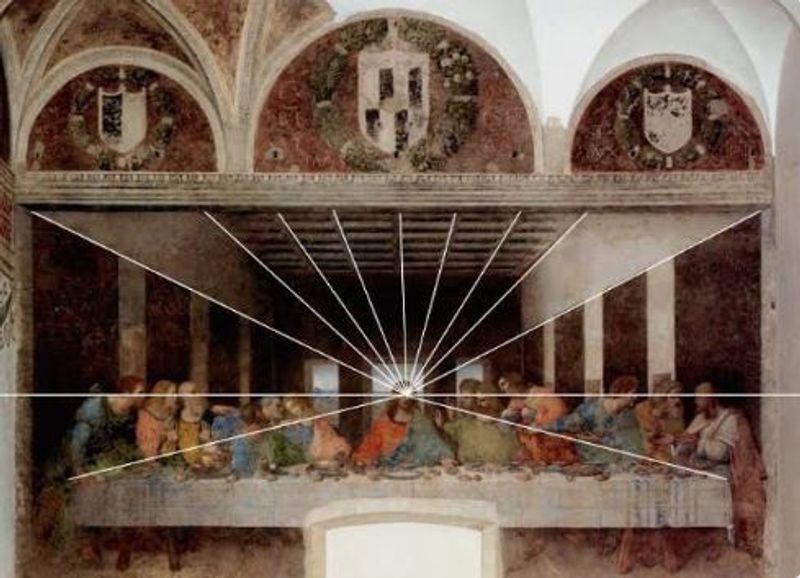 ചിത്രത്തിന്റെ മറ്റൊരു പ്രത്യേകത പെർസിപെക്റ്റിവ് ആണ്. ചിത്രം വരച്ച മുറിയുടെ തുടർച്ചയെന്നോണം തോന്നും ചിത്രത്തിലെ മുറി. യേശുവിന്റെ തല കേന്ദ്രമാക്കി ആണ് വരച്ചിരിക്കുന്നത് ഇതിനായി യേശുവിന്റെ തലയുടെ സ്ഥാനത്തു ഒരു ആണി അടിച്ചു അതിൽ നിന്നും ത്രെഡ് പിടിച്ചു വരച്ചതാണ് എന്ന് വിശ്വസിക്കുന്നു.