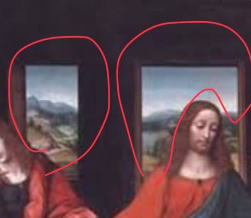 അത്താഴം എന്നതു സൂര്യൻ അസ്തമിച്ചു കഴിഞ്ഞു കഴിക്കുന്ന ഭക്ഷണമാണെങ്കിലും പിന്നിലുള്ള വാതിലിൽ കൂടി കാണുന്ന ദൃശ്യത്തിൽ പകലാണ്.