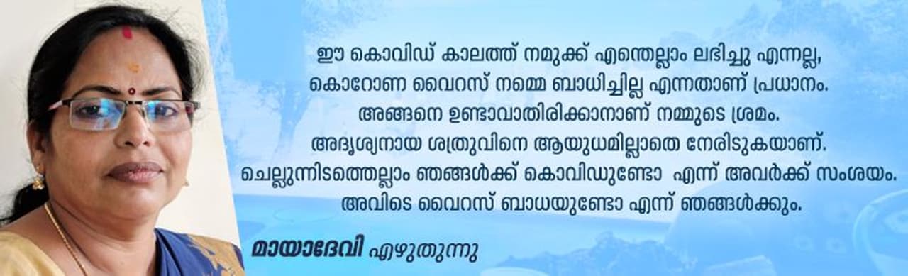 ആലപ്പുഴക്കാരായതിനാൽ ബസ്സിൽ കുത്തിയോട്ടപ്പാട്ടിന്റെ ചടുല താളങ്ങൾ... ന്യൂ ജനറേഷൻ പിള്ളേർ, 'ടീച്ചറേ ഇതൊന്നു മാറ്റുമോ? ബ്ലൂടൂത്തിൽ ഞങ്ങളൊരു പാട്ടിട്ടോട്ടെ' കൂട്ടത്തിൽ ഏറ്റവും കുസൃതിയായ ആദികേശ് എന്ന മിടുക്കൻ: ആദിയെ കണ്ണടയുടെ ഇടയിലൂടെ തറപ്പിച്ചു നോക്കിയെങ്കിലും അവന്റെ കുറുമ്പു നിറഞ്ഞ മുഖവും ഭാവവും എന്നിലെ കർക്കശക്കാരിയെ സ്നേഹമസൃണയാക്കി. 'കുടുക്കു പൊട്ടിയ കുപ്പായം' എന്ന അവരുടെ ഫേവററയിറ്റ് പാട്ട് സോഷ്യൽ ഡിസ്റ്റൻസിങ് നിലനിർത്തിക്കൊണ്ടുള്ള ചെറിയ തുള്ളിക്കളിയായി മാറി. കൊറോണ എന്ന ഭീകരൻ അവരെ ഒട്ടും അസ്വസ്ഥരാക്കുന്നില്ലല്ലോ. സമാധാനം.