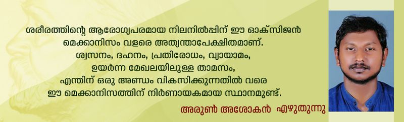 ചിലപ്പോഴൊക്കെ ഇവരിൽ ചിലർ അവർക്ക് തോന്നിയതുപോലെ പ്രവർത്തിക്കുമ്പോഴുണ്ടാകുന്ന പ്രശ്നങ്ങൾക്ക് പറയുന്ന പേരാണ് ക്യാൻസർ. അപ്പൊ ഈ ഓരോ കോശവും ചുമ്മാ അങ്ങ് പ്രവർത്തിക്കില്ല. അതിന് ഊർജം വേണം. ഊർജത്തിന് എടിപി എന്ന ബാറ്ററിവേണം. ആ ബാറ്ററി ചാർജ് ചെയ്യണമെങ്കിൽ കോശത്തിനുള്ളിൽ ചില സാധനങ്ങൾ കത്തിക്കണം. ആ കത്തൽ നടക്കണമെങ്കിൽ അഗ്നിഭഗവാനായ ഓക്സിജൻ വേണം. അതായത് രമണാ ഈ വലിച്ചുകയറ്റിയ ഓക്സിജൻ രക്തത്തിലെ ചുവന്ന രക്താണുക്കളിലൂടെ കയറി ശരീരത്തിന്റെ എല്ലാ ഭാഗത്തുമുള്ള കോശങ്ങളിലെത്തിയാലെ ഇങ്ങനെ എണീറ്റിരുന്ന് ഓരോന്ന് ടൈപ്പ് ചെയ്യാൻ പറ്റൂ. പക്ഷേ, എല്ലാ സമയവും മനുഷ്യന് ഒരുപോലെയല്ല ഓക്സിജൻ ലഭിക്കുന്നത്. ചില നേരങ്ങളിൽ ചില കോശങ്ങൾക്ക് കൂടുതൽ ഓക്സിജൻ വേണ്ടിവരും. അങ്ങനെ കുറേ പ്രശ്നങ്ങളുണ്ട്. ഈ പ്രശ്നങ്ങളെയെല്ലാം ശരീരം പ്രത്യേക മെക്കാനിസത്തിലൂടെ പരിഹരിച്ച് അങ്ങനെ നിലനിൽക്കുന്നുണ്ട്. ശരീരത്തിന്റെ നിലനിൽപ്പ് തന്നെ ഈ ഓക്സിജൻ മെക്കാനിസത്തിലാണ്. കോശത്തിലെ ചില പ്രത്യേക ജീനുകൾ, അവ നൽകുന്ന നിർദ്ദേശം, അതിന്റെ ഫലമായി ഉത്പാദിപ്പിക്കപ്പെടുന്ന പ്രോട്ടീൻ അങ്ങനെ നീളുന്ന ചങ്ങലയാണ് ഈ മെക്കാനിസം.