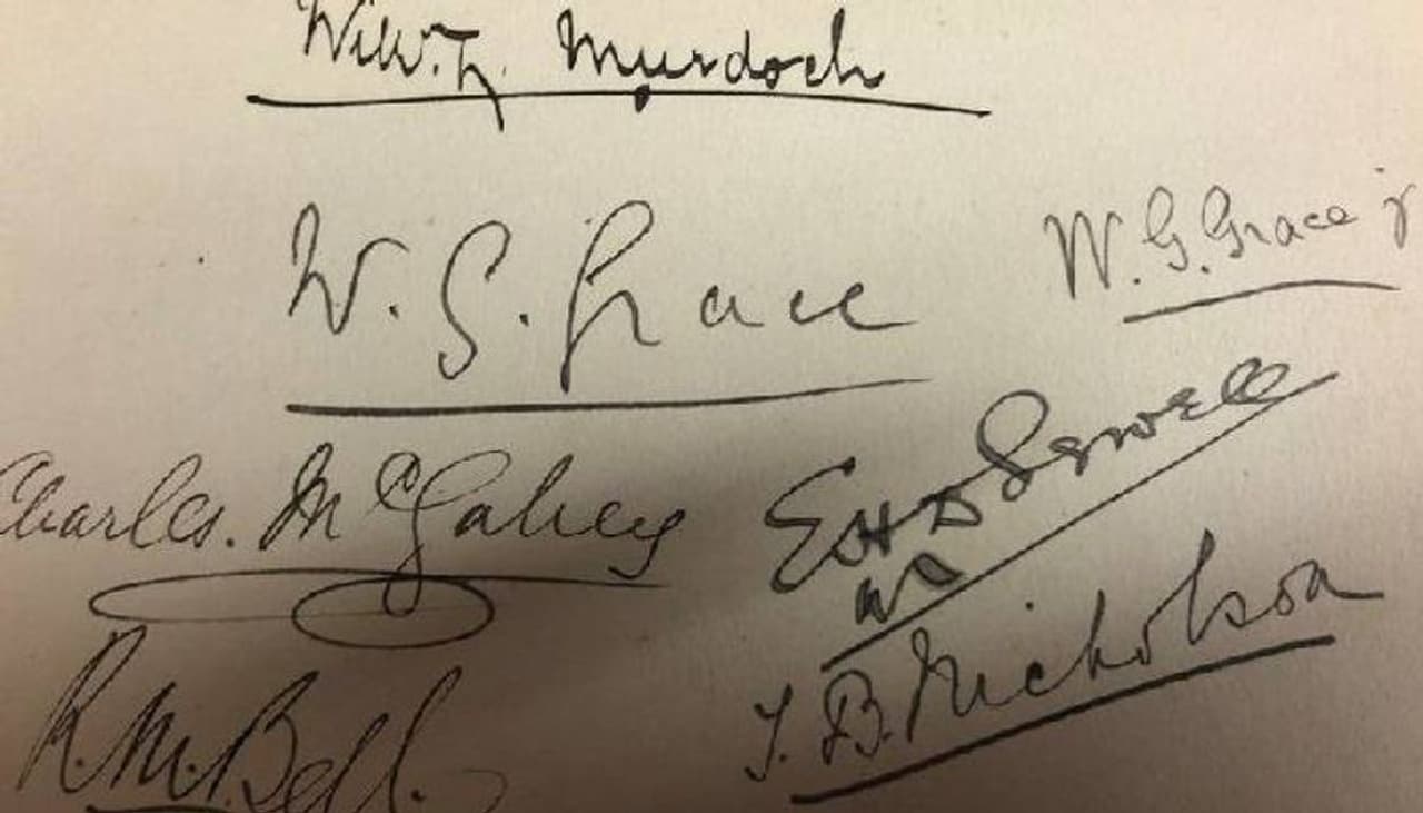 ഓസ്ട്രേലിയയിൽ നിന്നും വെസ്റ്റ് ഇൻഡീസിൽ നിന്നുമുള്ള ടൂർ ടീമുകൾ ഉൾപ്പെടെ 1900 -കളിലെ ക്രിക്കറ്റ് കളിക്കാരുടെ പേരുകൾ ഓട്ടോഗ്രാഫ് ബുക്കിലുണ്ട്. "ഡബ്ല്യുജി ഗ്രേസിനും മകനുമൊപ്പം കളിച്ച ജോൺ ഡഗ്ലസിന്റെ എസ്റ്റേറ്റിലെ പൊടിപിടിച്ച ഗാരേജിൽ നിന്ന് ചിലന്തിവലയിൽ പൊതിഞ്ഞ പഴയ സ്യൂട്ട്കേസിൽ ഞാൻ അത് കണ്ടെത്തി, അത് അപൂർവമാണ്. ക്രിക്കറ്റിന്റെ സുവർണ്ണ കാലഘട്ടത്തിലെ ഓട്ടോഗ്രാഫുകൾ ഇതിൽ അടങ്ങിയിരിക്കുന്നു” ലേലത്തിന് ശേഷം മാഡ്ലി പറഞ്ഞു.