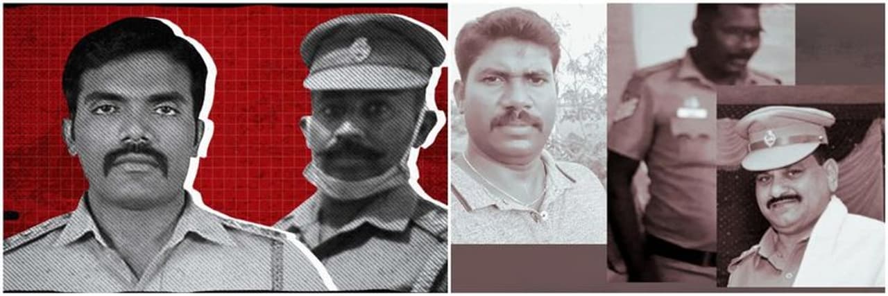 'കുറ്റാരോപിതരായ എസ് ഐ ബാലകൃഷ്ണൻ, രഘു ഗണേഷ്, മുരുഗൻ, മുത്തുരാജാ, ശ്രീധർ എന്നിവർ'