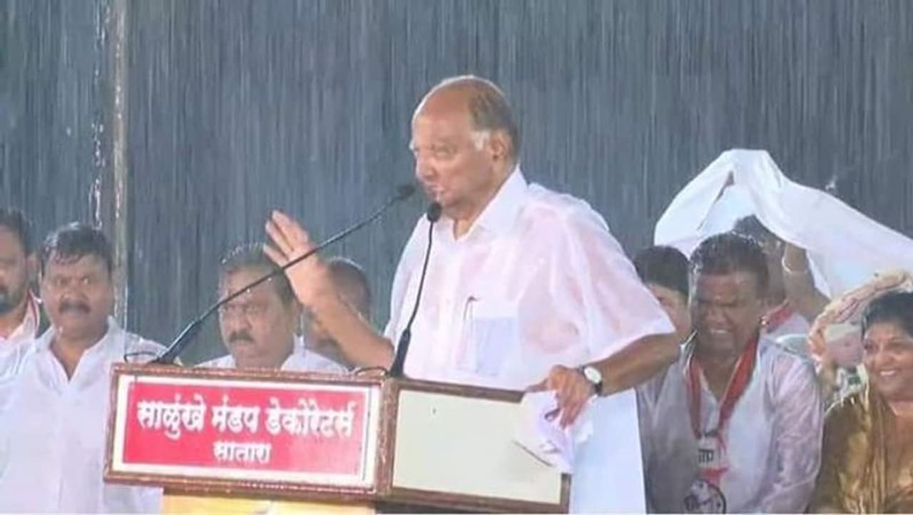 മഹാരാഷ്ട്രയിൽ അങ്ങോളമിങ്ങോളമുള്ള തന്റെ പ്രചാരണ റാലികൾക്കിടയിൽ ഒടുവിൽ പവാർ സത്താറയിലും എത്തി. അവിടെ ആയിരങ്ങൾ ഒഴുകിയെത്തിയ റാലിയെ അഭിസംബോധന ചെയ്ത് പ്രസംഗിച്ചു കൊണ്ടിരിക്കുമ്പോൾ, പെട്ടെന്ന് പെരുമഴ പെയ്തിറങ്ങി. എന്നാൽ അത് സാരമാക്കാതെ പവാർ തന്റെ പ്രസംഗം തുടർന്നു. അന്നദ്ദേഹം പറഞ്ഞ വാക്കുകൾ സത്താറയിലെ വോട്ടർമാരെ വൈകാരികമായി ഏറെ സ്വാധീനിച്ചു. "ഭോസലെയെ വിശ്വസിച്ചുപോയി. സ്ഥാനാർത്ഥിയെ തിരഞ്ഞെടുത്തപ്പോൾ തനിക്ക് തെറ്റുപറ്റി. അത് തിരുത്താൻ അവസരം തരണം."
