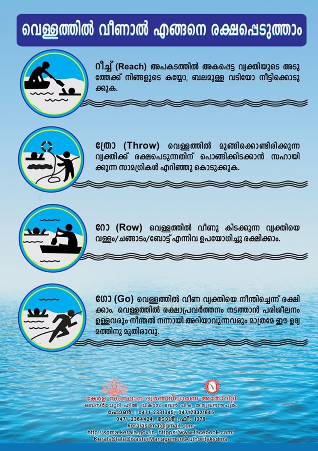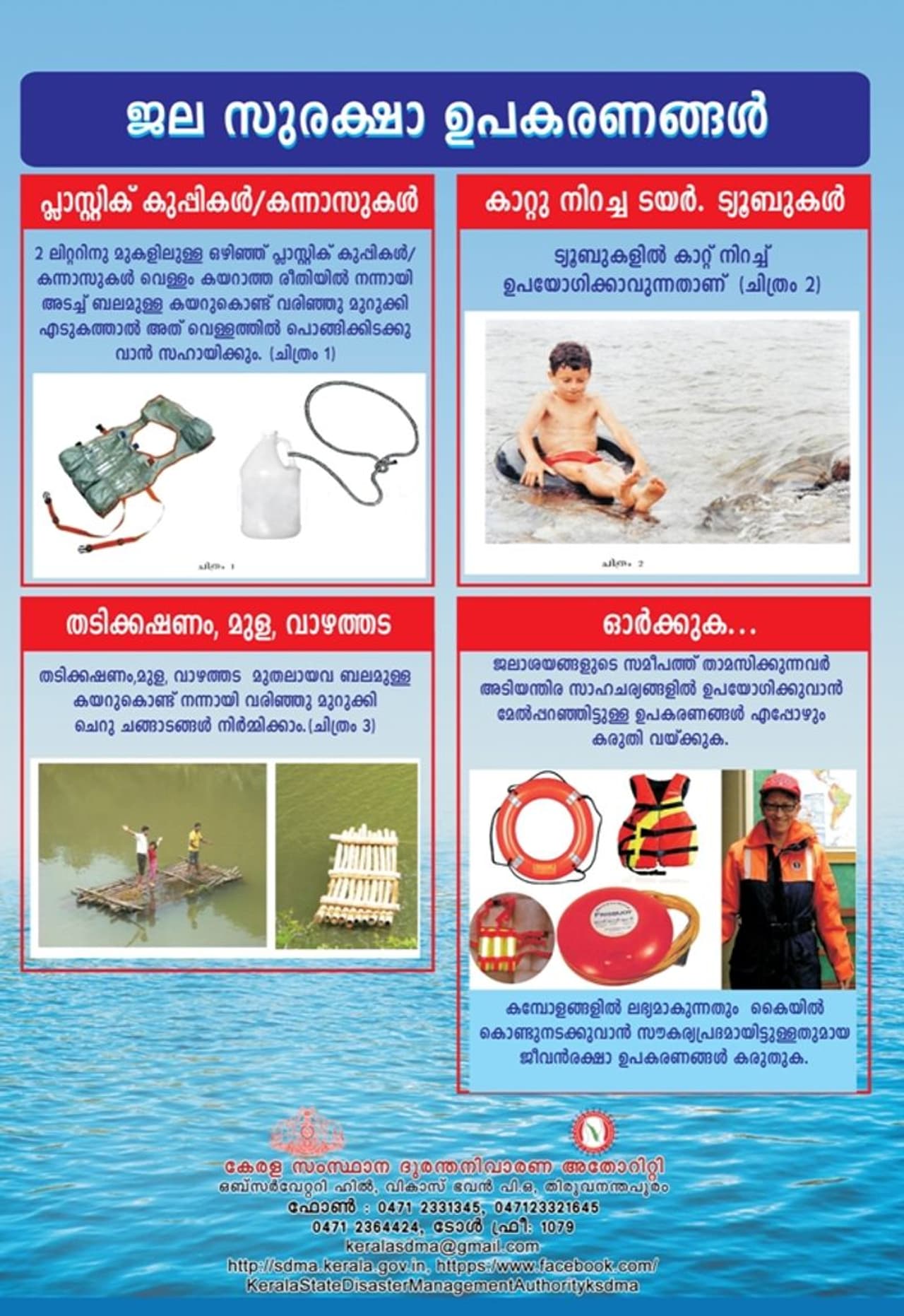 വെള്ളവുമായി ബന്ധപ്പെട്ടുണ്ടാകുന്ന അപകടങ്ങളിൽ അടിയന്തര സഹായത്തിനായി ബന്ധപ്പെടേണ്ട നമ്പറുകളും, അടിയന്തരമായി ചെയ്യാവുന്ന പ്രഥമശുശ്രൂഷയും, മുങ്ങിമരണങ്ങൾ ഒഴിവാക്കാനുള്ള മുൻകരുതലുകളും ഒക്കെ സംബന്ധിച്ച വിശദവിവരങ്ങൾ ഈ ബോധവൽക്കരണ പരിപാടികളുടെ ഭാഗമായി ജനങ്ങളിലേക്ക് എത്തിക്കുന്നുണ്ട്. കൂടുതൽ വിവരങ്ങൾക്ക് പൊതുജനങ്ങൾക്ക് സംസ്ഥാന ദുരന്ത നിവാരണ അതോറിറ്റിയുടെ നമ്പറിൽ സമ്പർക്കം പുലർത്താവുന്നതുമാണ്.