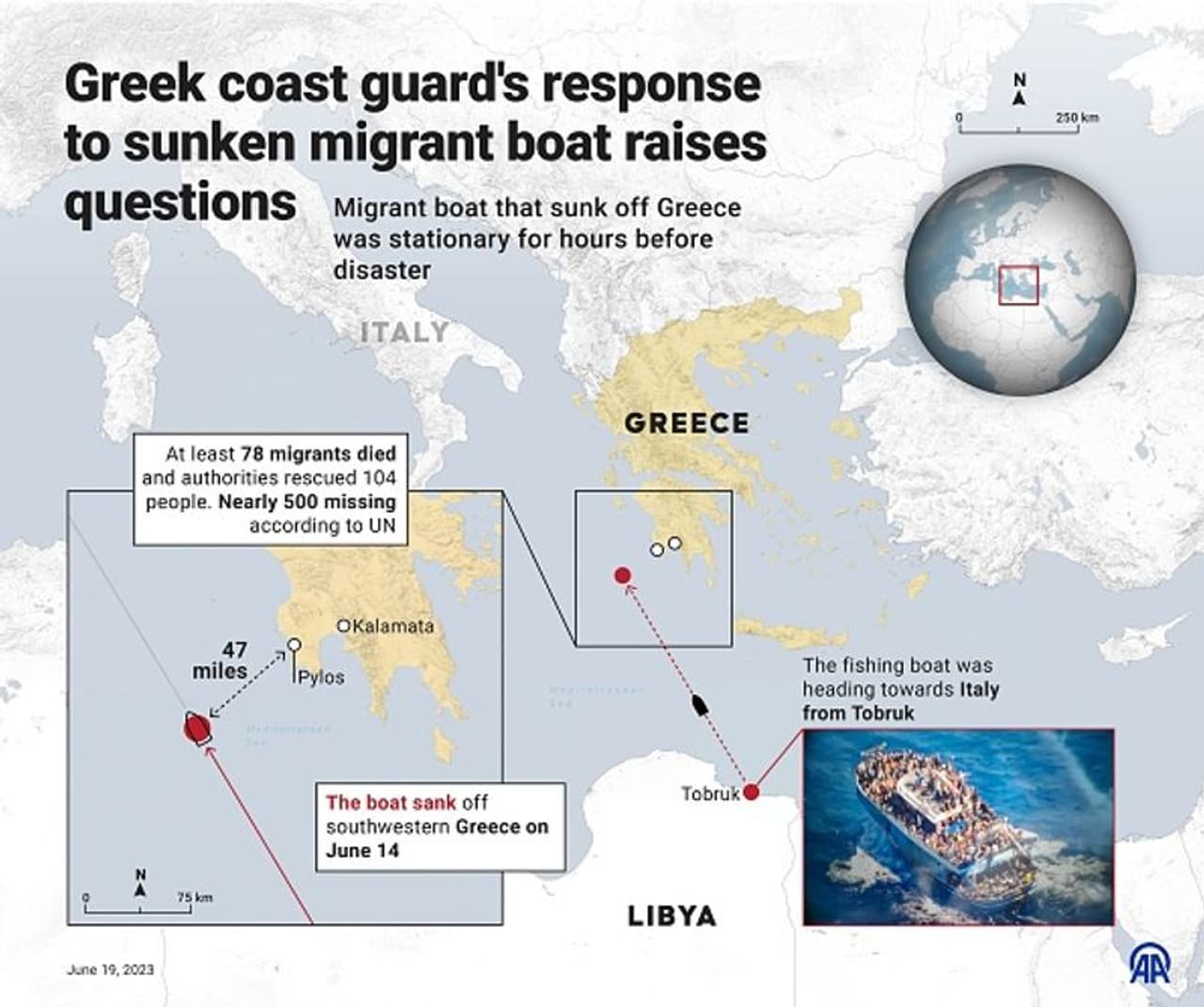 ജൂണ് 14 നായിരുന്നു ആദ്യത്തെ സംഭവം. അതിങ്ങനെയായിരുന്നു. 2023 ജൂൺ 10-ന് ലിബിയയിലെ ടോബ്രൂക്കിൽ നിന്ന് അധികാരികളുടെ കണ്ണുവെട്ടിച്ച് ഒരു മത്സ്യബന്ധന ബോട്ട് യാത്ര തിരിച്ചു. ഗ്രീസിലെ മെസ്സീനിയയിലെ പൈലോസ് തീരമായിരുന്നു ലക്ഷ്യം. പക്ഷേ, 40 പേര്ക്കുള്ള ആ തുരുമ്പെടുത്ത ചെറിയ മത്സ്യബന്ധന ബോട്ടില് ഉണ്ടായിരുന്നത് ഈജിപ്തുകാർ, സിറിയക്കാർ, പാകിസ്ഥാനികൾ, അഫ്ഗാനികൾ, ഫലസ്തീയര്, ലിബിയക്കാര് തുടങ്ങിയ ഏഷ്യനാഫ്രിക്കന് രാജ്യങ്ങളില് നിന്നുള്ള 400 മുതല് 750 ഓളം കുടിയേറ്റക്കാര്. അവരുടെ കൃത്യമായ കണക്കുകള് പോലും ലഭ്യമല്ലായിരുന്നു. ആ ബോട്ട് നാല് ദിവസങ്ങള്ക്ക് ശേഷം ജൂണ് 18 ന് ഗ്രീസിലെ മെസ്സീനിയയിലെ പൈലോസ് തീരത്ത് അയോണിയൻ കടലിലുണ്ടായ ശക്തമായ കാറ്റിലും തിരയിലും പെട്ട് മുങ്ങി. മണിക്കൂറുകള്ക്ക് ശേഷമെത്തിയ രക്ഷാപ്രവര്ത്തകര് 104 പേരെ രക്ഷപ്പെടുത്തി. പലയിടങ്ങളില് നിന്നായി ഒഴുകി നടന്ന 82 മൃതദേഹങ്ങള് കണ്ടെത്തി. ഇനി കണ്ടെത്താനുള്ളവരെത്രയെന്ന ചോദ്യം അപ്പോഴും അവശേഷിക്കുന്നു.