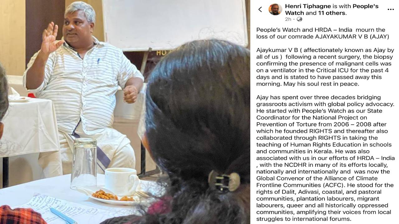 പിന്നാലെ 40 രാജ്യങ്ങളുടെ സെക്രട്ടേറിയറ്റ് യോഗത്തിൽ പങ്കെടുക്കാൻ അജയന് ക്ഷണം ലഭിക്കുന്നു. അവിടെയും ഈ വാദം അദ്ദേഹം കൃത്യമായി ഉന്നയിക്കുന്നു. നാലഞ്ച് വർഷം മുൻപ് ശശി തരൂർ ഓക്സ്ഫഡിൽ നടത്തിയ പ്രസംഗത്തിന്റെ ഓർമ ഉണർത്തുന്ന ഒന്നായിരുന്നു അത്. ചരിത്രത്തിലെ ദ്രോഹങ്ങൾ കണക്കിലെടുത്ത് ബ്രിട്ടൻ ഇന്ത്യക്ക് നഷ്ടപരിഹാരം നൽകണമെന്ന് തരൂർ വാദിച്ചപോലെയായിരുന്നു ശുചീകരണ തൊഴിലാളികളോട് മുൻ തലമുറകൾ ചെയ്ത ദ്രോഹത്തിന് നഷ്ടപരിഹാരം നൽകി വേണം പുതിയ പദ്ധതികളിലേക്ക് കടക്കേണ്ടതെന്ന അജയന്റെ സുചിന്തിത വാദം. ഇന്ന് പുലർച്ചെ, ജീവിതത്തോടുള്ള പോരാട്ടം അവസാനിപ്പിച്ച് നാല്പത്തി എട്ടാം വയസിൽ അജയൻ മടങ്ങിയപ്പോൾ നമുക്ക് നഷ്ടമായത് സങ്കീർണ വിഷയങ്ങൾക്ക് തെളിമയും ആർജവവുമുള്ള പരിപ്രേക്ഷ്യം നല്കാൻ കഴിഞ്ഞിരുന്ന ഒരു യഥാർത്ഥ ചിന്തകനെയാണ്.