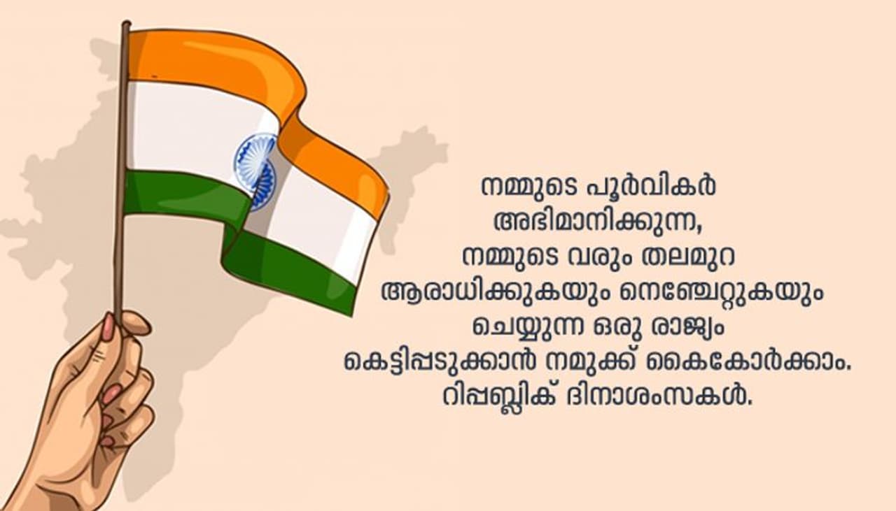നമ്മുടെ പൂർവികർ അഭിമാനിക്കുന്ന, നമ്മുടെ വരും തലമുറ ആരാധിക്കുകയും നെഞ്ചേറ്റുകയും ചെയ്യുന്ന ഒരു രാജ്യം കെട്ടിപ്പടുക്കാൻ നമുക്ക് കൈകോർക്കാം. റിപ്പബ്ലിക് ദിനാശംസകൾ.