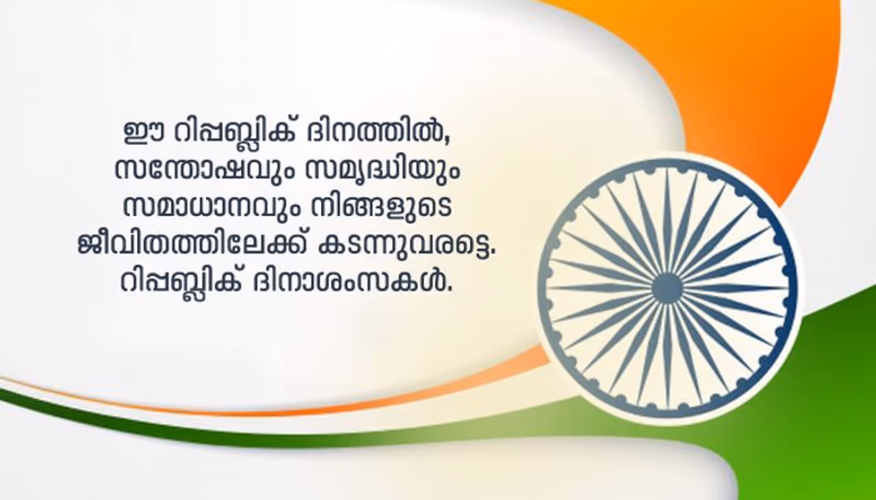 ഈ റിപ്പബ്ലിക് ദിനത്തിൽ, സന്തോഷവും സമൃദ്ധിയും സമാധാനവും നിങ്ങളുടെ ജീവിതത്തിലേക്ക് കടന്നുവരട്ടെ. റിപ്പബ്ലിക് ദിനാശംസകൾ.
