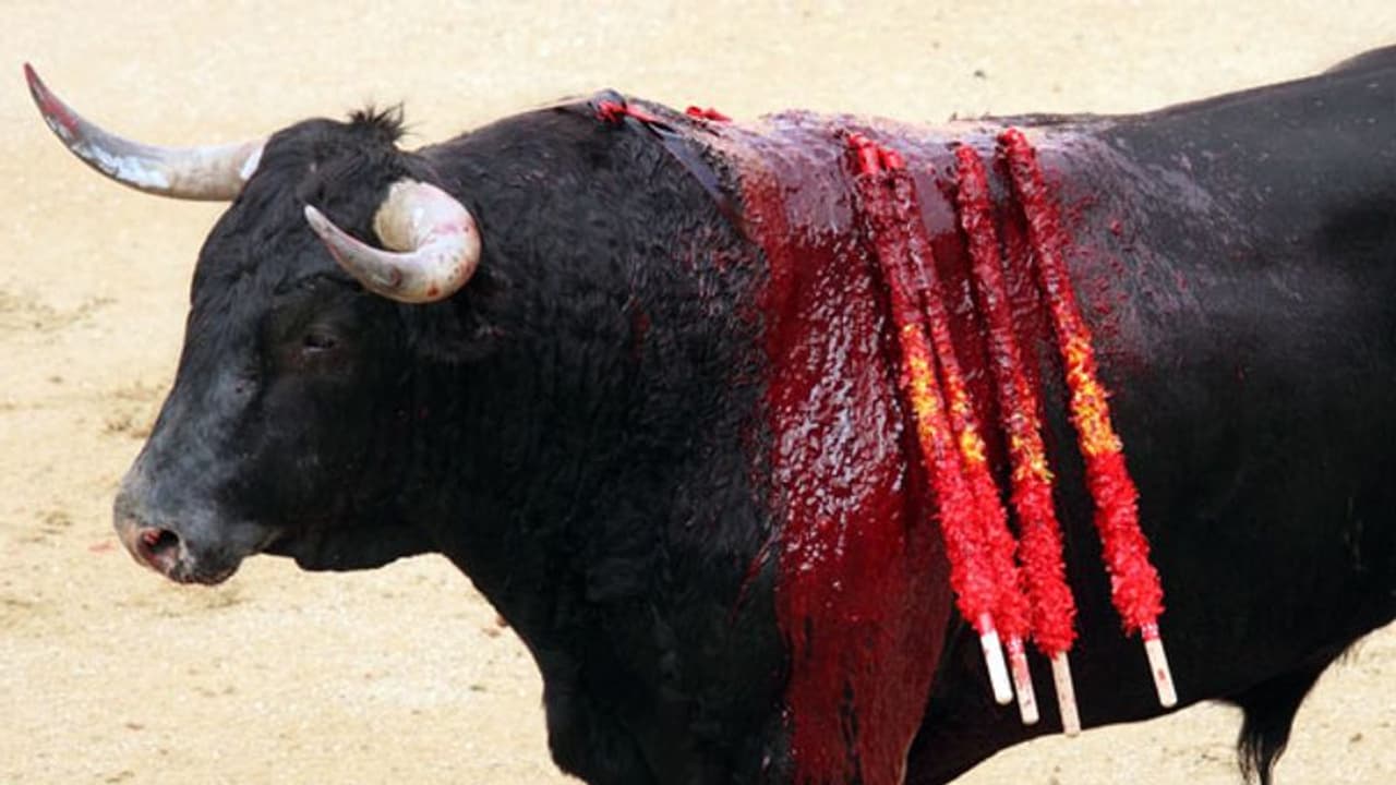 കാളപ്പോരിന് കൊണ്ടുവന്നതിനിടെ കൂട്ടില്നിന്നും രക്ഷപ്പെട്ട് രണ്ട് പേരെ കുത്തിവീഴ്ത്തി ഓടിയ പോരുകാളയെ കാറുകൊണ്ടിടിച്ച് കൊന്നു. സ്പെയിനിലെ ബ്രിഹൂഗയിലാണ് സംഭവം.Photo: Respresentational Image