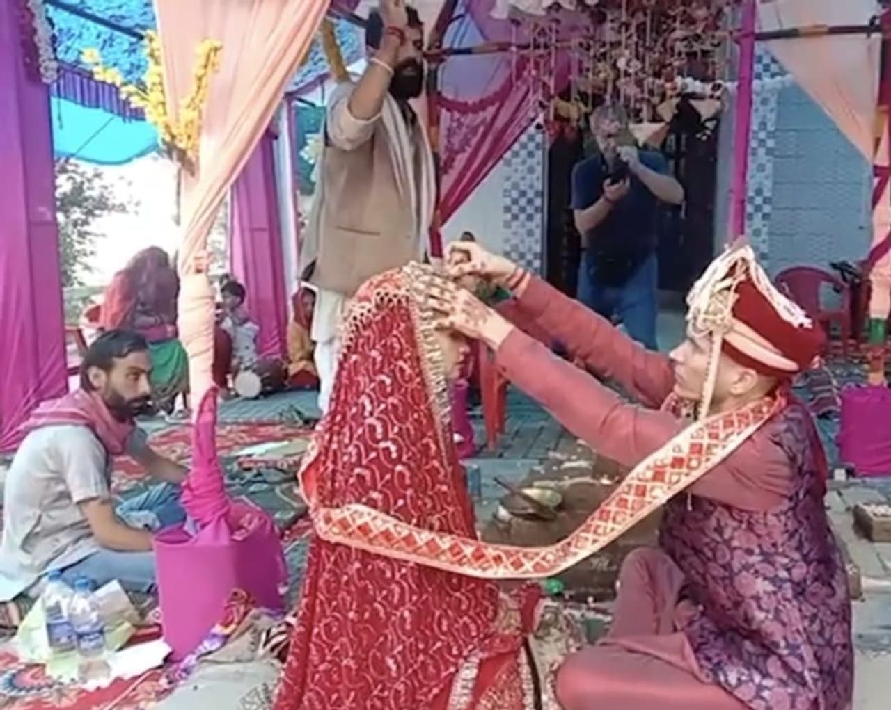 സനാതന ധർമ്മ പാരമ്പര്യ പ്രകാരമാണ് ഇരുവരും വിവാഹിതരായത്. "നമ്മുടെ പണ്ഡിറ്റ് രാമൻ ശർമ്മ അവരുടെ വിവാഹം നടത്തുകയും സനാതന ധർമ്മ പാരമ്പര്യമനുസരിച്ച് വിവാഹത്തിന്റെ പ്രാധാന്യത്തെക്കുറിച്ച് അവരോട് പറയുകയും ചെയ്തു" അദ്ദേഹം പറഞ്ഞു എന്ന് ടൈംസ് ഓഫ് ഇന്ത്യ എഴുതുന്നു. ഇന്ത്യൻ രീതിയിലാണ് വരനും വധുവും വസ്ത്രം ധരിച്ചതും ഒരുങ്ങിയതും എല്ലാം. നിരവധി വിദേശികളും വിവാഹചടങ്ങിൽ പങ്കെടുത്തു.