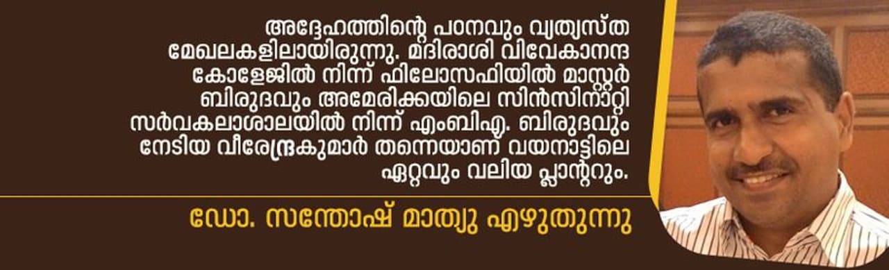 എസ്എസ്എൽസി പരീക്ഷ തോറ്റ ചരിത്രമാണ് വീരേന്ദ്രകുമാറിന്റേതെന്ന് പറയുന്നു. പിന്നീട് തോല്ക്കാന് മനസ്സില്ലാതെ വാശിയോടെ പഠിച്ചു കയറി. മറ്റെല്ലാ ബഹുമുഖ പ്രതിഭകളുടെ കാര്യത്തിലും തുടക്കത്തിലേ ഈ പരാജയം കാണാം. ബിൽ ഗേറ്റ്സ്, വാറൻ ബഫറ്റ്, സുക്കർബർഗ്, ഒബാമ, ഐൻസ്റ്റീൻ, സ്റ്റീവ് ജോബ്സ്, എബ്രഹാം ലിങ്കൺ ഇവരെല്ലാം ഉദാഹരണങ്ങളാണ്. ഇവരുടെ നിരയിലേക്ക് ഒരു മലയാളി polimath- അത് വീരേന്ദ്രകുമാർ മാത്രം.