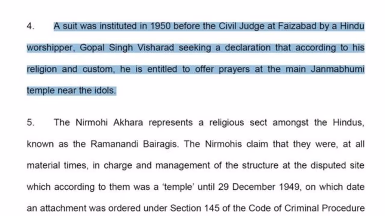 അയോധ്യയിലെ തർക്കഭൂമി ഹിന്ദുക്കൾക്ക് വിട്ടുനൽകിക്കൊണ്ടുള്ള വിധി വന്നിരിക്കുകയാണല്ലോ. ഒപ്പം, അവകാശവാദവുമായി സുപ്രീംകോടതിയെ സമീപിച്ച സുന്നി വഖഫ് ബോർഡിന്, വിട്ടുകൊടുക്കുന്ന ഭൂമിക്ക് പകരം അഞ്ചേക്കർ സ്ഥലം പള്ളി പണിയാൻ വേണ്ടി അയോധ്യയിൽ തന്നെ കണ്ടെത്തി നൽകണം എന്നും വിധിയിൽ പറഞ്ഞു. ഈ വിധിയിൽ പേര് പരാമർശിക്കപ്പെട്ടതിന്റെ പേരിൽ വീണ്ടും വെള്ളിവെളിച്ചത്തിൽ വന്നു നിൽക്കുന്ന ഒരു പേരുകൂടിയുണ്ട്. അത്, ഈ വിഷയത്തിൽ ഒരിക്കൽ കോടതിയെ സമീപിച്ചിട്ടുള്ള ഗോപാൽ സിങ്ങ് വിശാരദിന്റേതാണ്. സമക്ഷത്ത് പരാതിയുമായി വന്ന് അറുപത്തൊമ്പത് കൊല്ലത്തിനു ശേഷം, വിശാരദിന് കോടതി വിഗ്രഹങ്ങൾക്കടുത്തു ചെന്ന് പ്രാർത്ഥനാദികർമങ്ങൾ അനുഷ്ടിക്കാനുള്ള അനുവാദം നൽകിക്കൊണ്ട് വിധിച്ചിട്ടുണ്ട്. ഒരേയൊരു പ്രശ്നം മാത്രം, അദ്ദേഹം മരണപ്പെട്ടിട്ട് വർഷം മുപ്പത്തിമൂന്നുകഴിഞ്ഞിരിക്കുന്നു..!