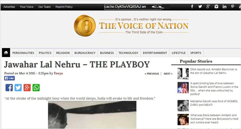 ഈ വെബ്സൈറ്റ് ഇന്നില്ലെങ്കിലും ഇതുപോലെ പരശ്ശതം സൈറ്റുകളിൽ ഇതേ വിവരങ്ങൾ സത്യം എന്ന അവകാശവാദത്തോടൊപ്പം ഇന്നും ലഭ്യമാണ്. നെഹ്രുവിനെപ്പറ്റി നടത്തുന്ന ഇന്റർനെറ്റ് സെർച്ചുകളിൽ ആദ്യം തന്നെ ഈ ഗോസിപ്പുകൾ വരും വിധത്തിൽ കൃത്യമായ കീ വേർഡുകൾ ഉപയോഗിച്ചാണ് ഇവ എഴുതപ്പെട്ടിരിക്കുന്നത്. ' Truth about' എന്നതാണ് ഈ ലേഖനങ്ങളിൽ ഉപയോഗിച്ചിരിക്കുന്ന ഒരു സെർച്ച് കീ വേർഡ്.