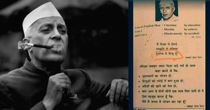 ബിജെപിയുടെ ഐടി സെൽ അധ്യക്ഷൻ അമിത് മാളവ്യ അടക്കമുള്ളവർ റീട്വീറ്റ് ചെയ്ത ഒരു ഉദ്ധരണിയും നെഹ്രുവിന്റേതെന്ന മട്ടിൽ സാമൂഹ്യമാധ്യമങ്ങളിൽ പ്രചരിക്കുന്നുണ്ടിന്നും . അത് ഇപ്രകാരമാണ് , " ഞാൻ വിദ്യാഭ്യാസം കൊണ്ട് ഒരു ഇംഗ്ലീഷുകാരനും, സംസ്കാരം കൊണ്ട് ഒരു മുസ്ലീമും, യാദൃച്ഛികത ഒന്ന് കൊണ്ടുമാത്രം ഹിന്ദുവുമാണ്.." . ഇങ്ങനെ ഒരിക്കലും നെഹ്റു പറഞ്ഞിട്ടില്ല. യഥാർത്ഥത്തിൽ നെഹ്റു ഒരു തികഞ്ഞ ആജ്ഞേയവാദിയായിരുന്നു. ഒരു മതത്തിലും വിശ്വാസമില്ലാതിരുന്നിട്ടും അദ്ദേഹം വളരെ കൃത്യമായ മതേതര കാഴ്ചപ്പാടുകൾ വെച്ചുപുലർത്തിയിരുന്നു.