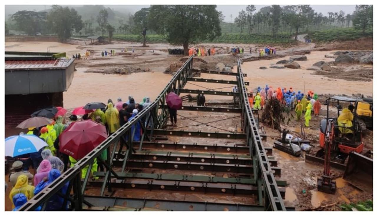 (ദുരന്തബാധിതമായ മുണ്ടക്കൈയിലേക്ക് പോകാനായി ചൂരല് മലയില് സൈന്യം നിര്മ്മിക്കുന്ന ബെയ്ലി പാലം)