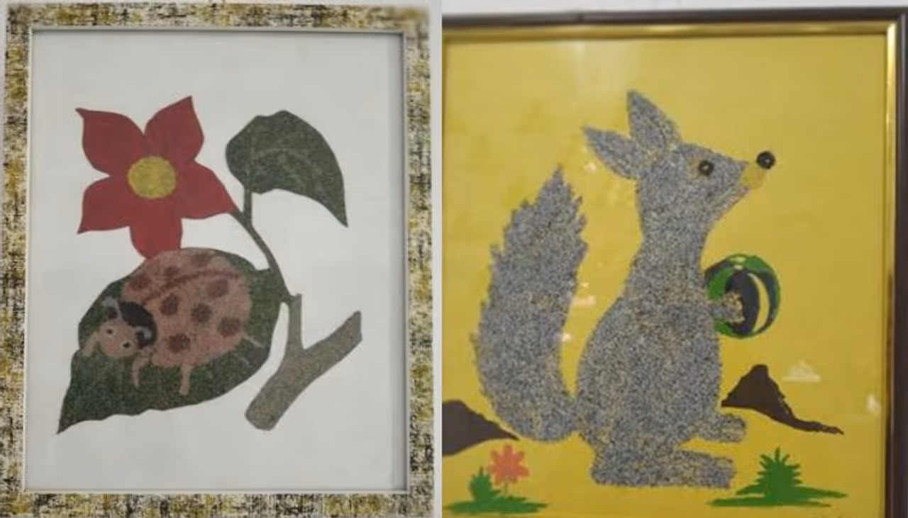 പക്ഷെ, ജീവിതമല്ലേ, പുതിയത് പലതും സംഭവിച്ചുകൊണ്ടേയിരിക്കും. അതിനിടെ കുട്ടികളായി, പഠനമായി വീണ്ടും സാധാരണ ജീവിതത്തിന്റെ തിരക്കുകളിലേക്ക്... പിന്നെ, മക്കളും കൊച്ചുമക്കളുമെല്ലാമായി ജീവിതം മാറി. പക്ഷെ, കലയണ്... അങ്ങനെയങ്ങ് വിട്ടുപോകുമോ? അറുപതാമത്തെ വയസ്സിനു ശേഷം വീണ്ടും കലാപരീക്ഷണങ്ങളില് സജീവമായി വത്സല. ഒന്നുകില് അവര് തന്നെ വരയ്ക്കും, അല്ലെങ്കില് ഔട്ട്ലൈന് പ്രിന്റ് എടുത്ത് കിട്ടുന്ന ചിത്രങ്ങള്... അതില് പൊടി ചേര്ത്തു. പൊടി മാത്രമല്ല, പൂക്കളുടെ ചെറിയ വിത്തുകള് വരെ ചിത്രരചനയ്ക്ക് നിറം പകരും. അതുതന്നെയാണ് വത്സലയുടെ ചിത്രങ്ങളുടെ പ്രത്യേകതയും. എല്ലാം ഇങ്ങനെ പൊടികളും വിത്തും പഴയതുണികളുമൊക്കെയാണ് നിറങ്ങളായി മാറുന്നത്.