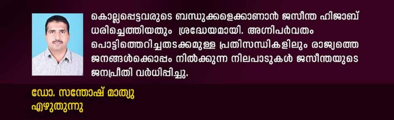 50 ലക്ഷം ജനസംഖ്യയുള്ള ന്യൂസിലൻഡിൽ കേവലം 25 പേർ മാത്രമാണ് കൊവിഡ് ബാധിച്ച് മരിച്ചത്... 50 -ൽ താഴെ മാത്രമാണ് ന്യൂസീലൻഡിൽ നിലവിലുള്ള കൊവിഡ് രോഗികൾ. എത്ര എത്ര അനായാസമായാണ് ജസീന്ത ഏതു പ്രതിസന്ധിയേയും നേരിടുന്നത് എന്നത് ഒരു പാഠപുസ്തകമാണ്. ക്രൈസ്റ്റ് ചർച്ച് സംഭവത്തിൽ അവർ നേരിട്ടെത്തി ആശ്വസിപ്പിച്ച് ജനങ്ങളെ ഒരുമിച്ചു നിർത്തിയത് എത്ര കരുതലോടെയാണ് ലോകം കണ്ടത്. കൊവിഡ് സമയത്തും ദിവസവുമുള്ള വാർത്താ സമ്മേളനത്തിനുശേഷം അതിന്റെ ചെറിയൊരു വിവരണവുമായി എത്തുന്നതും നിറഞ്ഞ പുഞ്ചിരിയോടെ ആയിരുന്നു. ചുറ്റുമുള്ള ഫർണ്ണിച്ചറിനെ വരെ പരിചയപ്പെടുത്തും അവർ. നിർമ്മാണമേഖലയ്ക്ക് പ്രാമുഖ്യം നല്കി, സൗജന്യ തൊഴിൽ പരിശീലനം നല്കി കൊവിഡ് സമയത്തും ജനങ്ങളുടെകൂടെ നിന്നു.