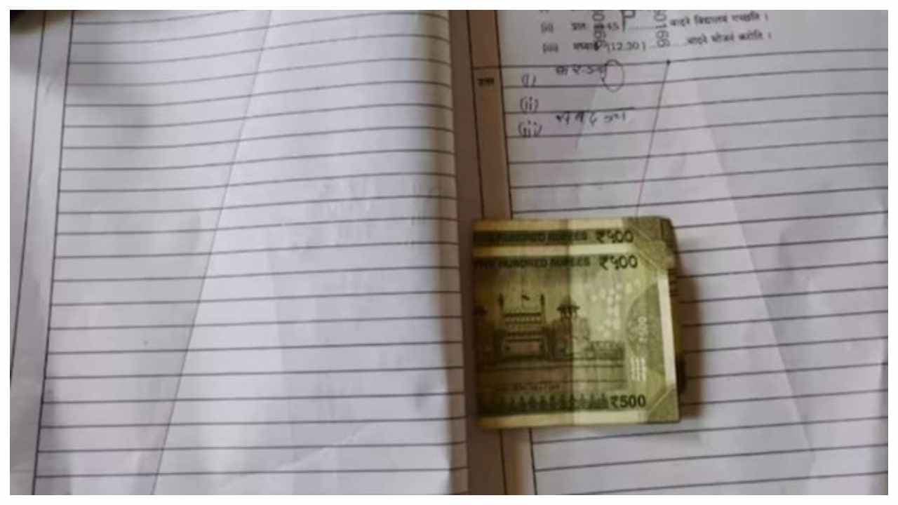 ഉത്തരക്കടലാസിനുള്ളിൽ 500 ന്റെ നോട്ടുകൾ തുന്നികൂട്ടി വച്ചിരിക്കുന്ന ചിത്രം സമൂഹ മാധ്യമങ്ങളിൽ വൈറലായി. ബോർഡ് പരീക്ഷകൾ അവസാനിച്ചതോടെ ജാർഖണ്ഡിൽ ഉത്തരക്കടലാസുകളുടെ മൂല്യനിർണ്ണയം നടക്കുകയാണ്. വിദ്യാർത്ഥികൾക്ക് കൃത്യവും ന്യായവുമായ മാർക്ക് ഉറപ്പാക്കാൻ അധ്യാപകർ ശ്രമകരമായ ജോലി ചെയ്യുന്നു. വിദ്യാർത്ഥികൾ എഴുതിക്കൂട്ടിയ ഉത്തരങ്ങൾക്കിടയിലൂടെ വായിച്ച് പോകുമ്പോഴാണ് പലാമുവിലെ ഒരു മൂല്യനിർണ്ണയ ക്യാമ്പിലെ അധ്യാപകന്റെ കണ്ണിൽ രണ്ട് 500 രൂപയുടെ നോട്ടുകൾ ഉടക്കിയത്. കൂടെ ഒരു അപേക്ഷയും ഉണ്ടായിരുന്നു. സംസ്കൃത പരീക്ഷ പാസാക്കി വിടണം. എന്നാൽ, പൂജ്യം മാർക്ക് നൽകിയ അധ്യാപകൻ തനിക്ക് ഉത്തരക്കടലാസിന് ഇടയിൽ നിന്നും ലഭിച്ച പണം അധികൃതരെ ഏൽപ്പിച്ചു. പിന്നാലെ സംഭവം സമൂഹ മാധ്യമങ്ങളിൽ വൈറലായി.