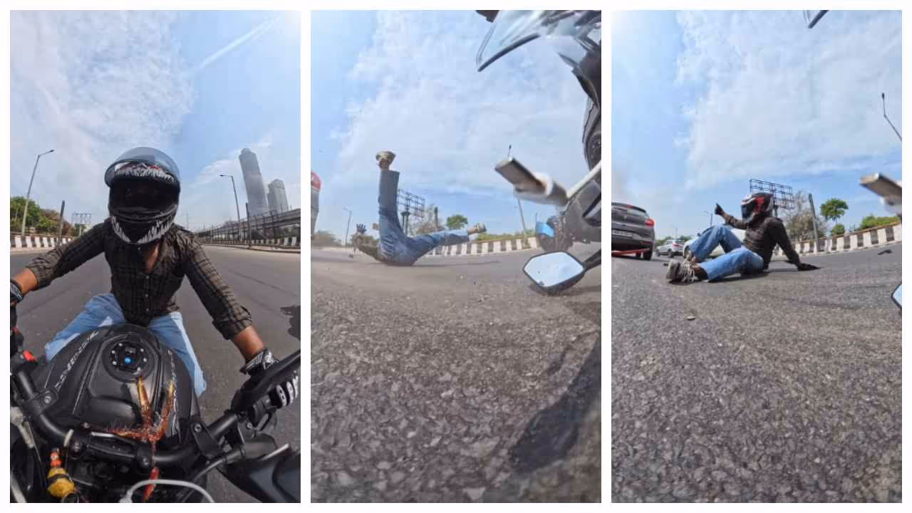 ഹൈവേയിലൂടെ അമിതവേഗതയിൽ പോകുമ്പോൾ കാറുമായി കൂട്ടിയിടിച്ച് തെറിച്ച് വീണിട്ടും, ഒട്ടും പതറാതെ അസാമാന്യമായ ശാന്തത പ്രകടിപ്പിച്ച ബൈക്ക് യാത്രികന്റെ വീഡിയോ സമൂഹ മാധ്യമങ്ങളിൽ വൈറലായി. വിക്കി സർക്കാർ എന്ന ഇൻസ്റ്റാഗ്രാം ഉപയോക്താവാണ് താൻ നേരിട്ട അപകടത്തിന്റെ ദൃശ്യങ്ങൾ പങ്കുവെച്ചത്. അപ്രതീക്ഷിത അപകടം നടന്നിട്ടും ഒട്ടം അസ്വസ്ഥത കാണിക്കാതെ സമചിത്തത പാലിച്ച അദ്ദേഹത്തിനെ നിരവധി പേരാണ് അഭിനന്ദിച്ചത്.