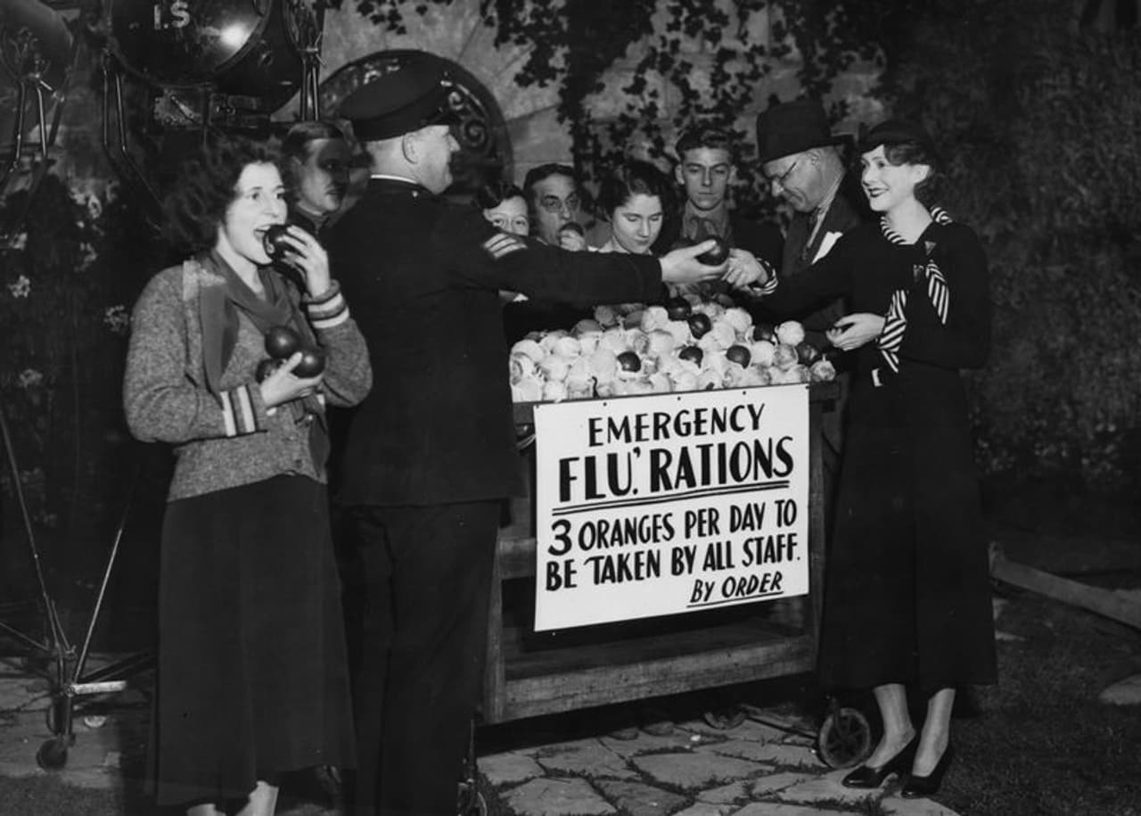 അന്ന് ഫ്ലൂ റേഷനായി ഓറഞ്ചുകള് ലഭിച്ചിരുന്നു. ഓരോ ദിവസവും മൂന്ന് ഓറഞ്ചുകളാണ് ലഭിച്ചിരുന്നത്. ബ്രിട്ടീഷ് നടിയായ മോളി ലമന്റ് അവരുടെ റേഷന് ലഭിച്ച ശേഷം ലണ്ടനിലെ എല്സ്ട്രീ സുറ്റുഡിയോയുടെ മുന്നില്വച്ചെടുത്ത ചിത്രം തന്നെ അതിന് തെളിവാണ്. 1940 -ലായിരുന്നു ഇത്.