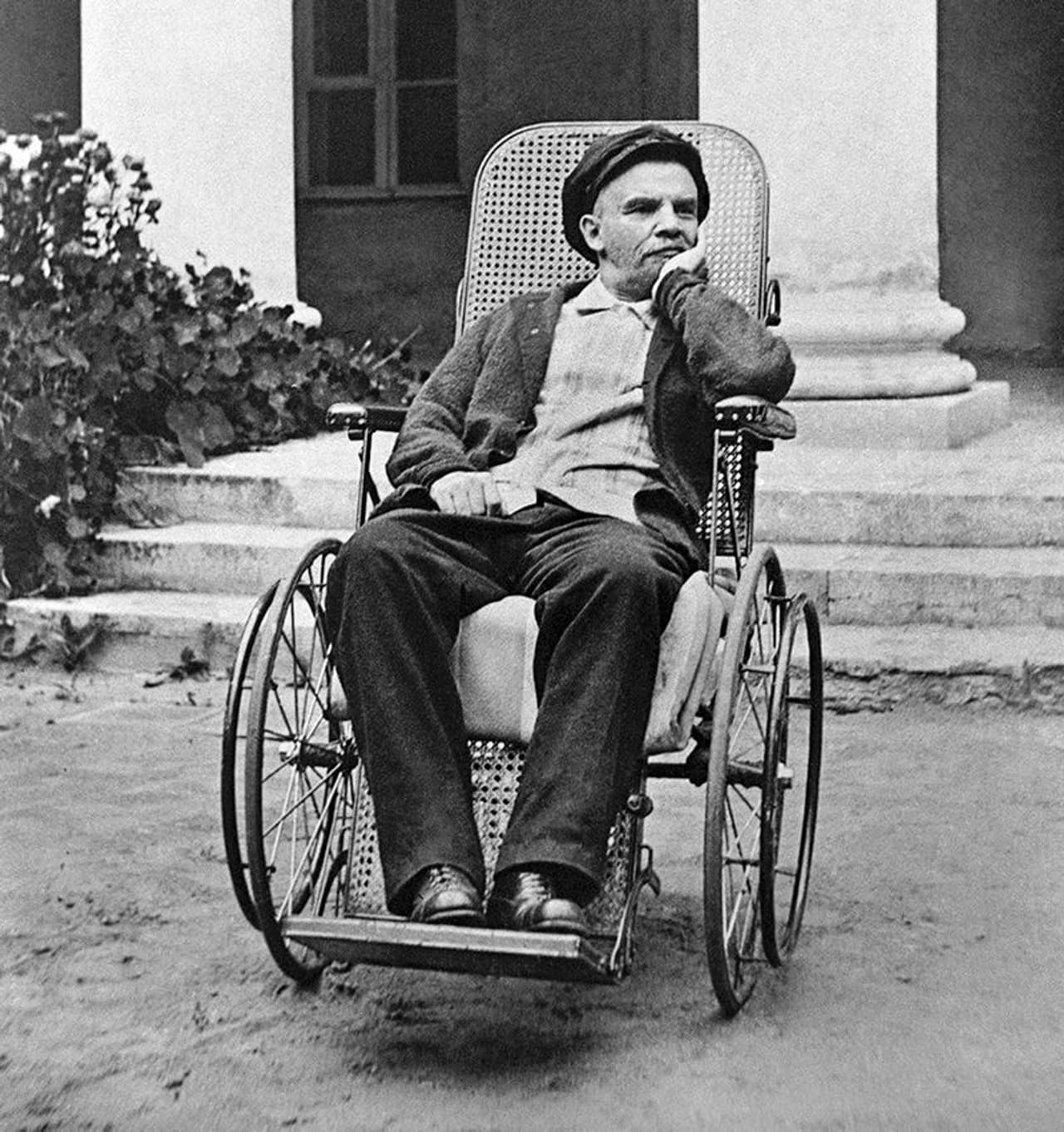 'ലെനിൻ അവസാനകാലത്ത് വീൽ ചെയറിൽ ഗോർക്കി എസ്റ്റേറ്റിൽ'