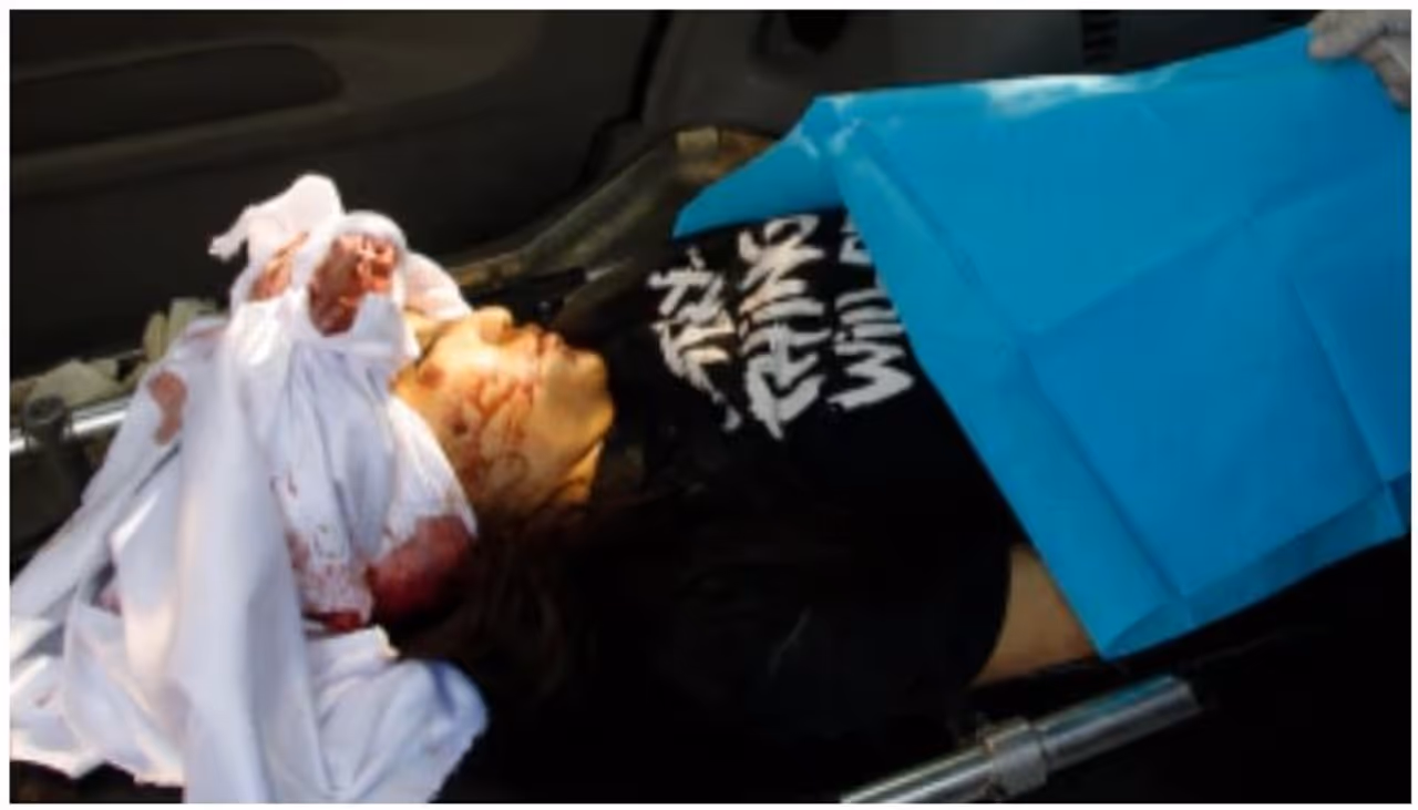 അപ്പോൾ അവളുടെ ലിപ്സ്റ്റിക്കിട്ട ചുണ്ടുകൾ പൊട്ടി ചോര കട്ടപിടിച്ചു കിടപ്പുണ്ടായിരുന്നു. നെറ്റിയുടെ ഒത്ത നടുക്കായി വലിയൊരു ദ്വാരമുണ്ടായിരുന്നു.
