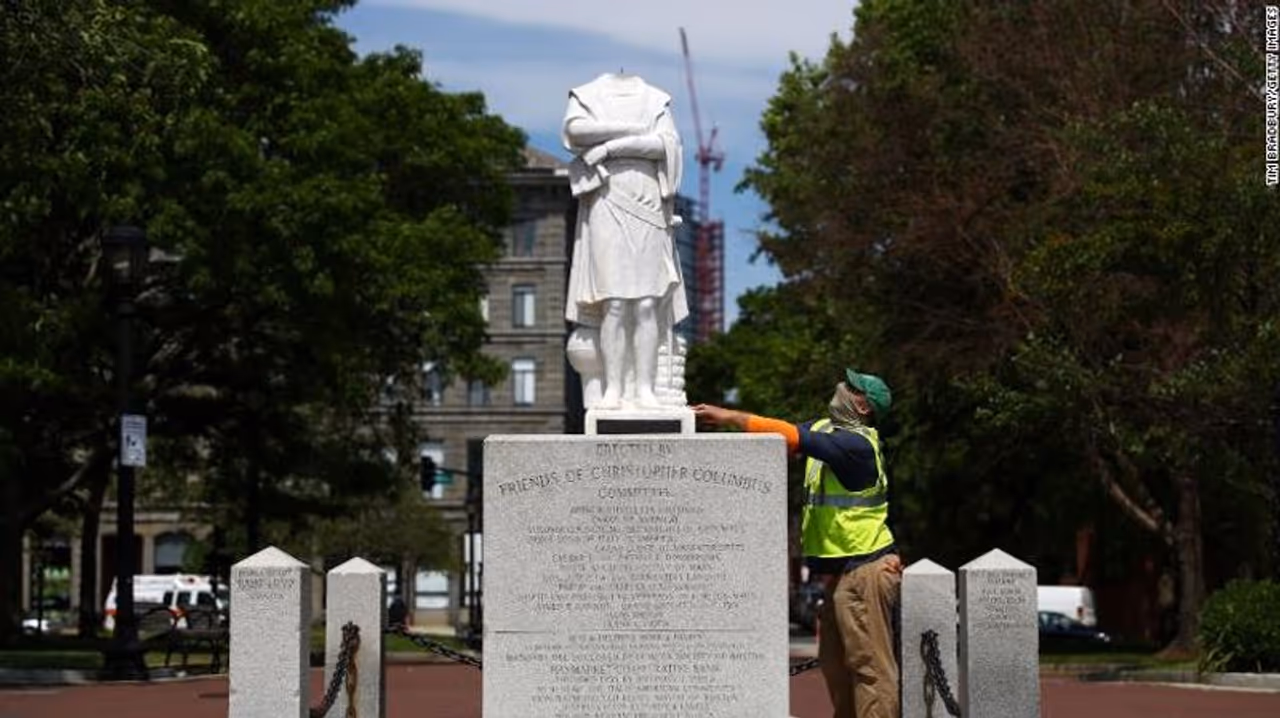 മൂന്നിലധികം അമേരിക്കൻ നഗരങ്ങളിലാണ് ഇതുവരെ കൊളംബസിന്റെ തല കൊയ്യപ്പെട്ടിരിക്കുനന്ത് . ബോസ്റ്റണിലെ നോർത്ത് എൻഡിലെ ആറടി ഉയരത്തിലുള്ള ഇറ്റാലിയൻ മാർബിളിൽ തീർത്ത കൊളംബസ് പ്രതിമയുടെ തല ആരോ കൊയ്തെടുത്തു. വിർജീനിയയിലെ റിച്ച്മണ്ടിൽ ഉള്ള മറ്റൊരു പ്രതിമയ്ക്ക് അജ്ഞാതരായ അക്രമികൾ തീകൊളുത്തി. തകർന്നു വീണ പ്രതിമ എടുത്ത് തടാകത്തിലെറിഞ്ഞു. സമാനമായ ഒരു പ്രവൃത്തി മിന്നസോട്ടയിലെ സെയ്ന്റ് പോളിലും നടന്നു. മെയ് 25 -ന് ജോർജ് ഫ്ലോയിഡിന്റെ കൊല നടന്നശേഷം പലതരത്തിലുള്ള പ്രതിഷേധങ്ങൾ അമേരിക്കൻ മണ്ണിനെ പിടിച്ചുകുലുക്കിയ കൂട്ടത്തിലാണ് അടിമക്കച്ചവടവുമായി ബന്ധമുള്ള പല ചരിത്രപുരുഷന്മാരുടെയും പ്രതിമകൾ തകർക്കുക എന്ന ആഹ്വാനം ഉണ്ടായത്. ആദ്യം താഴെപ്പോയത് പതിനേഴാം നൂറ്റാണ്ടിലെ അറിയപ്പെടുന്ന അടിമക്കച്ചവടക്കാരനായ എഡ്വേഡ് കോൾസ്റ്റന്റെ പ്രതിമകളാണ്. ബ്രിസ്റ്റലിൽ നടന്ന ഒരു 'ബ്ലാക്ക് ലൈവ്സ് മാറ്റർ' പ്രക്ഷോഭത്തിനിടെയാണ് കോൾസ്റ്റന്റെ പ്രതിമകൾ പ്രതിഷേധക്കാർ തകർത്തെറിഞ്ഞത്. അതിനു ശേഷം ചരിത്രത്തിലെ സമാനമായ വിവാദവ്യക്തിത്വങ്ങൾ പലരും പ്രതിഷേധക്കാരുടെ ആക്രമണങ്ങൾക്ക് ഇരയായി.