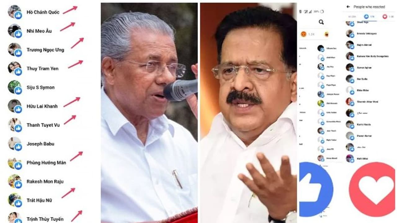തിരുവനന്തപുരം: ഇരട്ട വോട്ടുകള് എന്ന ആരോപണവുമായി പ്രതിപക്ഷ നേതാവ് ചെന്നിത്തല രംഗത്ത് വന്നതിന് പിന്നാലെ ഇടത് അണികളാണ് വിയറ്റ്നാം പോലുള്ള രാജ്യങ്ങളില് നിന്നും ചെന്നിത്തലയ്ക്ക് ലൈക്ക് കിട്ടുന്നു എന്ന ആരോപണവുമായി രംഗത്ത് എത്തിയത്. വ്യാജ അക്കൗണ്ടുകൾ ഉപയോഗിച്ച് ലൈക്ക് പെരുപ്പിച്ചു കാട്ടുകയാണെന്ന ആരോപണമാണ് പ്രധാനമായും അവര് ഉയര്ത്തിയത്. ഇതിന് പിന്നാലെ മുഖ്യമന്ത്രി പിണറായി വിജയന്റെ പോസ്റ്റിലും ഇത്തരം ലൈക്കുകള് ഉണ്ടെന്ന ആരോപണവുമായി യുഡിഎഫ് അണികളും സജീവമായി.
