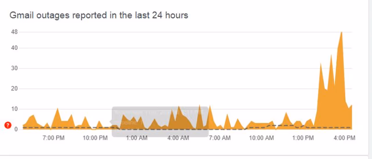 പ്രശ്നം നേരിട്ടവരില് 49 ശതമാനം പേര് സര്വര് പ്രശ്നം എന്നാണ് രേഖപ്പെടുത്തുന്നത്. 30 ശതമാനം പേര്ക്ക് ഇമെയില് അയക്കാന് പ്രശ്നം നേരിടുന്നതായി പറയുന്നു. 21 ശതമാനം പേര് ജിമെയില് സൈറ്റ് തന്നെ തുറക്കാന് പ്രയാസപ്പെടുന്നതായി പറയുന്നു. സംഭവത്തില് ഗൂഗിള് ഉടമസ്ഥതയിലുള്ള ജിമെയില് ഔദ്യോഗികമായി പ്രതികരണം ഒന്നും നടത്തിയിട്ടില്ല. അതേ സമയം ട്വിറ്ററിലും മറ്റും നിരവധിപ്പേര് ഈ വിഷയം ഉന്നയിക്കുന്നുണ്ട്.
