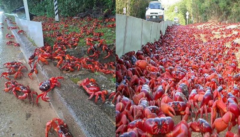 ഓസ്ട്രേലിയയിലെ ക്രിസ്മസ് ദ്വീപിൽ ദശലക്ഷക്കണക്കിന് ചെമ്പൻ ഞണ്ടുകൾ പ്രജനനത്തിനായി മഴക്കാടുകളിൽ നിന്ന് കടൽത്തീരത്തേക്ക് വാർഷിക ദേശാടനം ആരംഭിച്ചിരിക്കുകയാണ്.